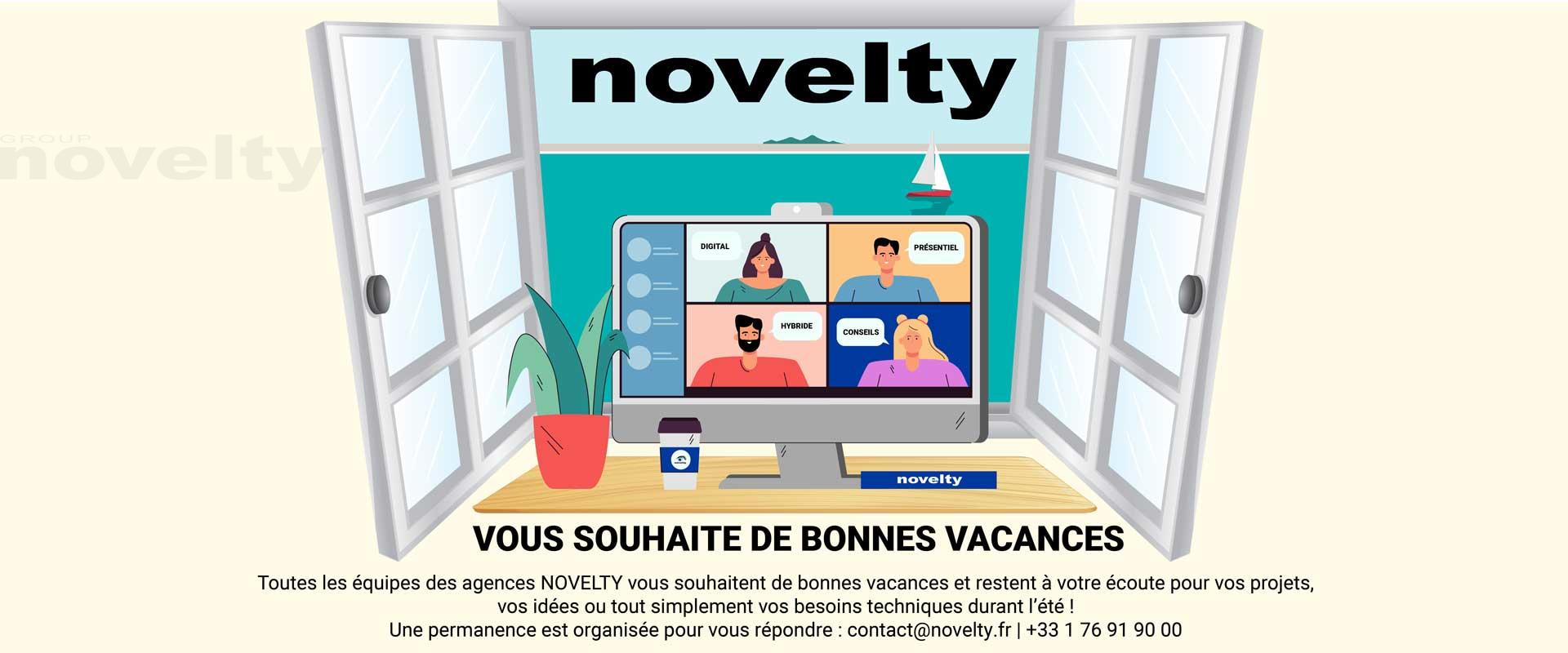 Toutes les équipes des agences NOVELTY vous souhaitent de bonnes vacances et restent à votre écoute pour vos projets, vos idées ou tout simplement vos besoins techniques durant l’été !