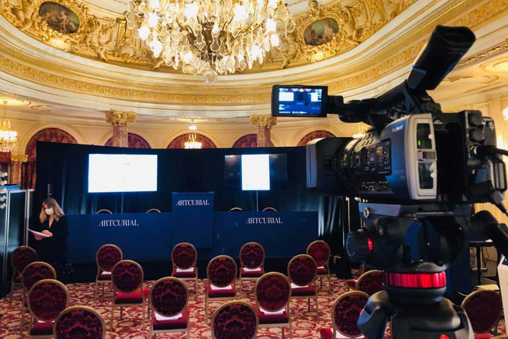 Pour cette vente hybride, Novelty Azur a mis en place un écran 75'', un rack de son pour 2 micros HF et l'éclairage avec des NOVELTY MatLED.