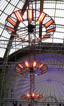 Les lustres sont équipés de panneaux radiants munis