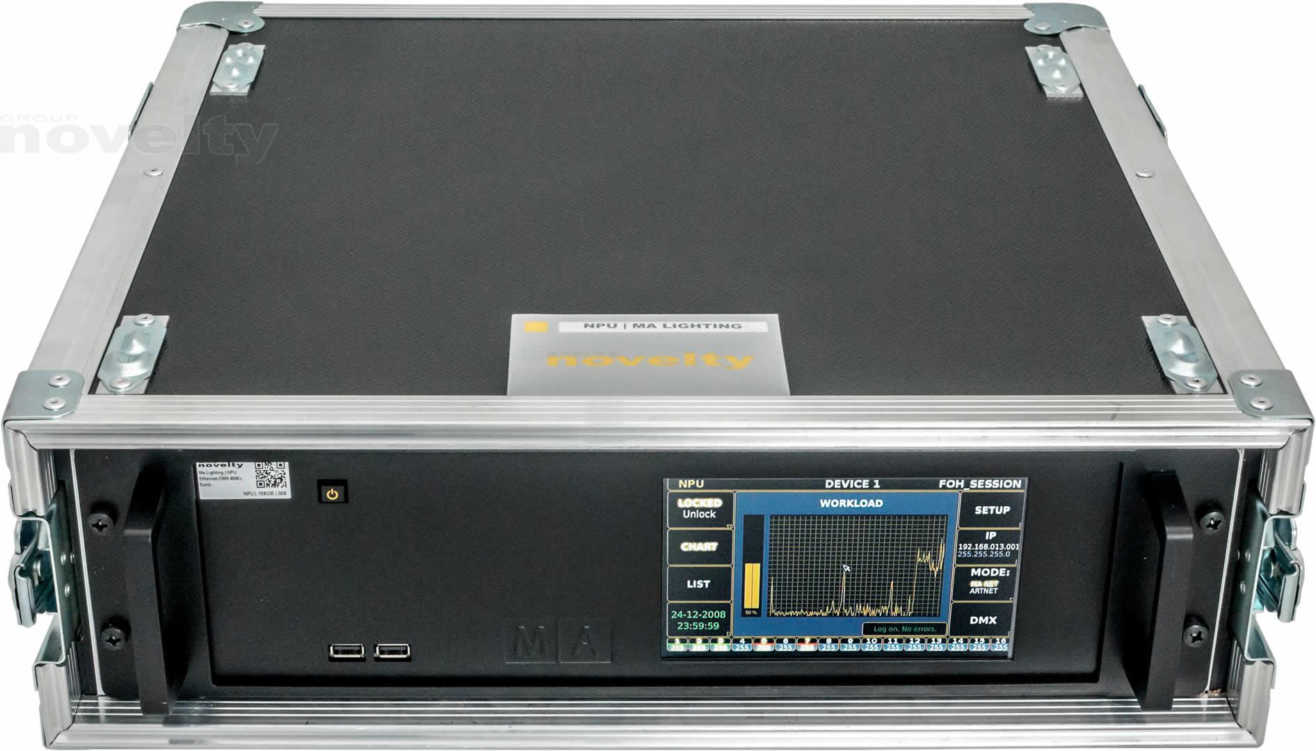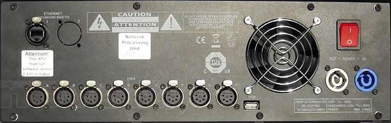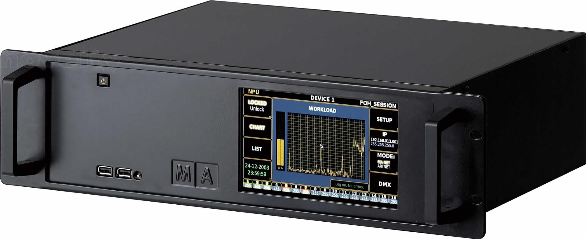Le mA NPU (unité de traitement de réseau) est le lien entre l'Ethernet et les dispositifs commandés par DMX. Il est également possible d'employer le mA NPU pour des applications additionnelles de commande ; ses pleines possibilités deviennent évidentes une fois fonctionnées dans le MA-Net2. Pour les réseaux décentralisés de DMX, le mA NPU convertit les données entrantes d'Ethernet en données de DMX512-A. La conversion de données soutient le MA-Filet et le MA-Net2. Les données converties sont transmises par l'intermédiaire de 8 connecteurs indépendants de DMX, qui peuvent également être configurés comme entrées de DMX.