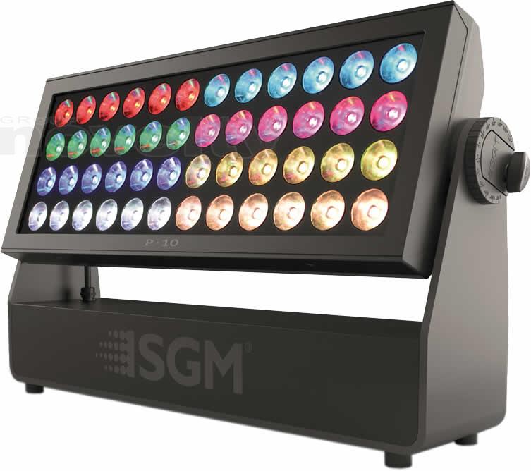 The SGM P-10 delivers best-in-class optical color mixing. It maintains the same accurate factory color calibration of the P series and the avoidance of color shifts. The P-10 delivers superb color rendering, and like all SGM wash lights, it is designed to achieve, not only deep reds and warm pastels, but also blue saturates, bright magentas, and soft turquoises.