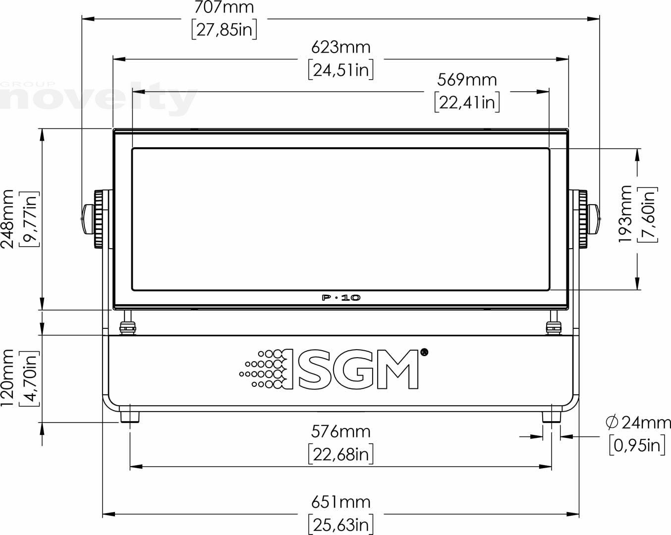 Because of its integrated handle and included omega brackets, the SGM P-10 is easy to transport, to rig, and to focus. The P-10 comes with 3 x 2 ¼ turn locking points to allow the use of one or two clamps, enabling the fixture to be mounted in any position. The built-in safety wire eyelet in the base secures the unit when rigged.