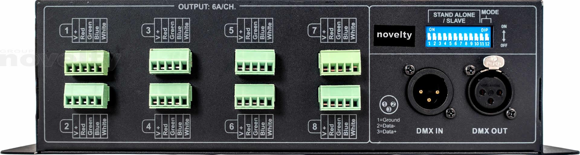 - DMX Channels : Min. 24 (8 x RGB), Max. 32 (8 x RGBW)