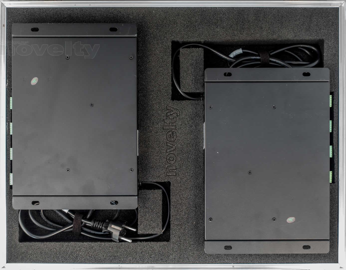 Set de 2 x Alimentation-gradateur LED, DMX512 (XLR 3b), 8 x 4 circuits (R,G,B,W), 144W maxi, 24V