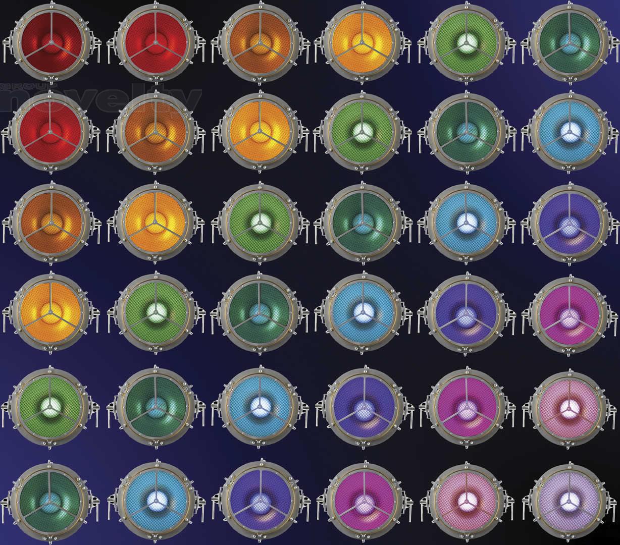 - half-ball diffusor dome distributing light evenly from RGBW LED source inside of the reflector