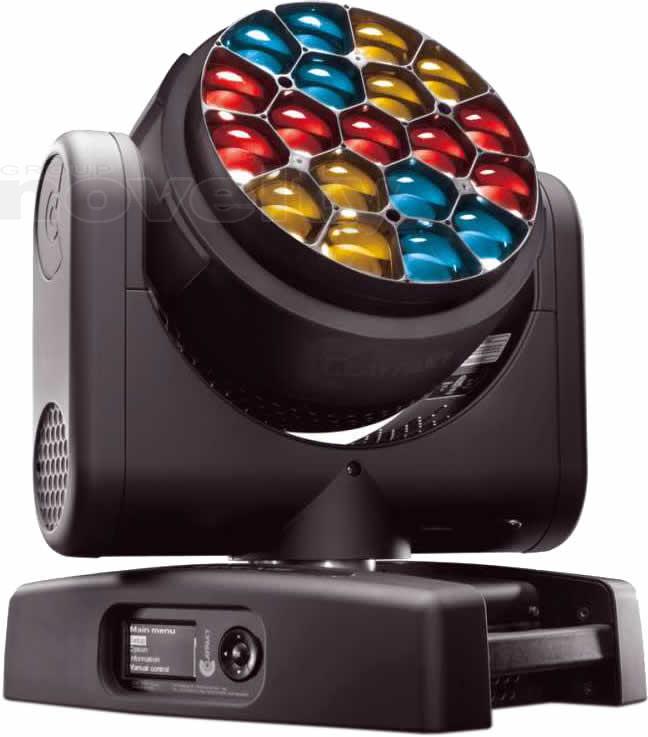 Projecteur asservi type lyre, 19 LED 40W RGBW, zoom 4° à 60°