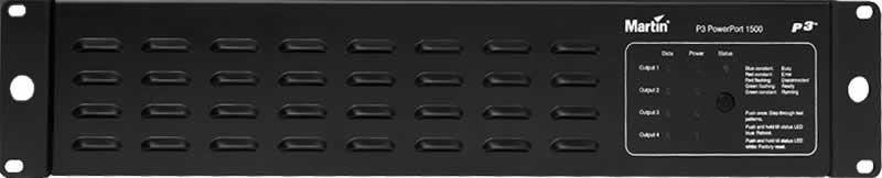 P3 Powerport 1500 est un processeur d´alimentation et de données pour la gamme de LEDs vidéo créatives de Martin, comprenant entre autre les séries VC-Dots et VC-Grids. Lorsqu´il est piloté par un Contrôleur Système P3 de Martin, il fournit aux produits connectés des capacités de traitement d´image de haute qualité et une grande simplicité de mise en œuvre et de configuration.