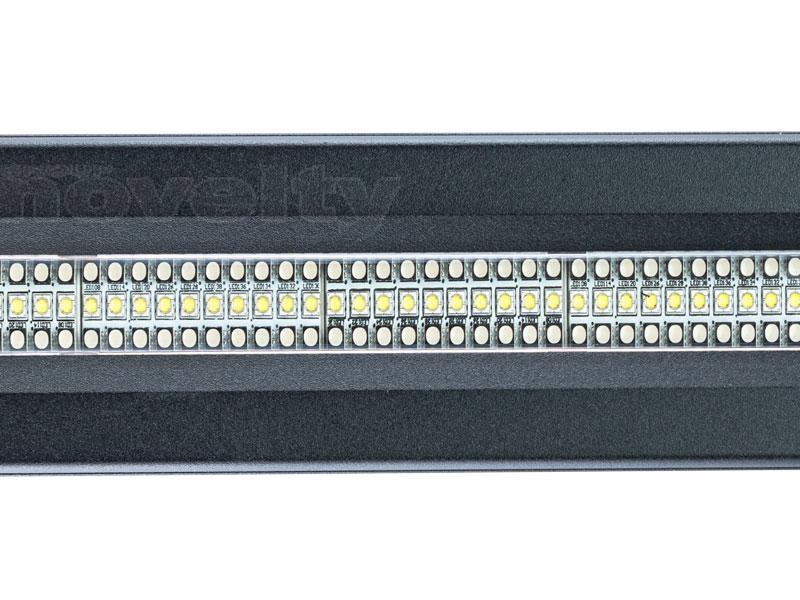 Les 20 segments de pixels stroboscopiques et les 2x20 segments de pixels RGB d'une JDC Line 500 ont chacun une largeur de 25 mm et sont juxtaposés sans discontinuité, de sorte qu'il n'y a pas de zones noires entre les pixels - ce qui assure non seulement un flux lumineux particulièrement élevé, mais aussi de véritables lignes lumineuses continues et puissantes.