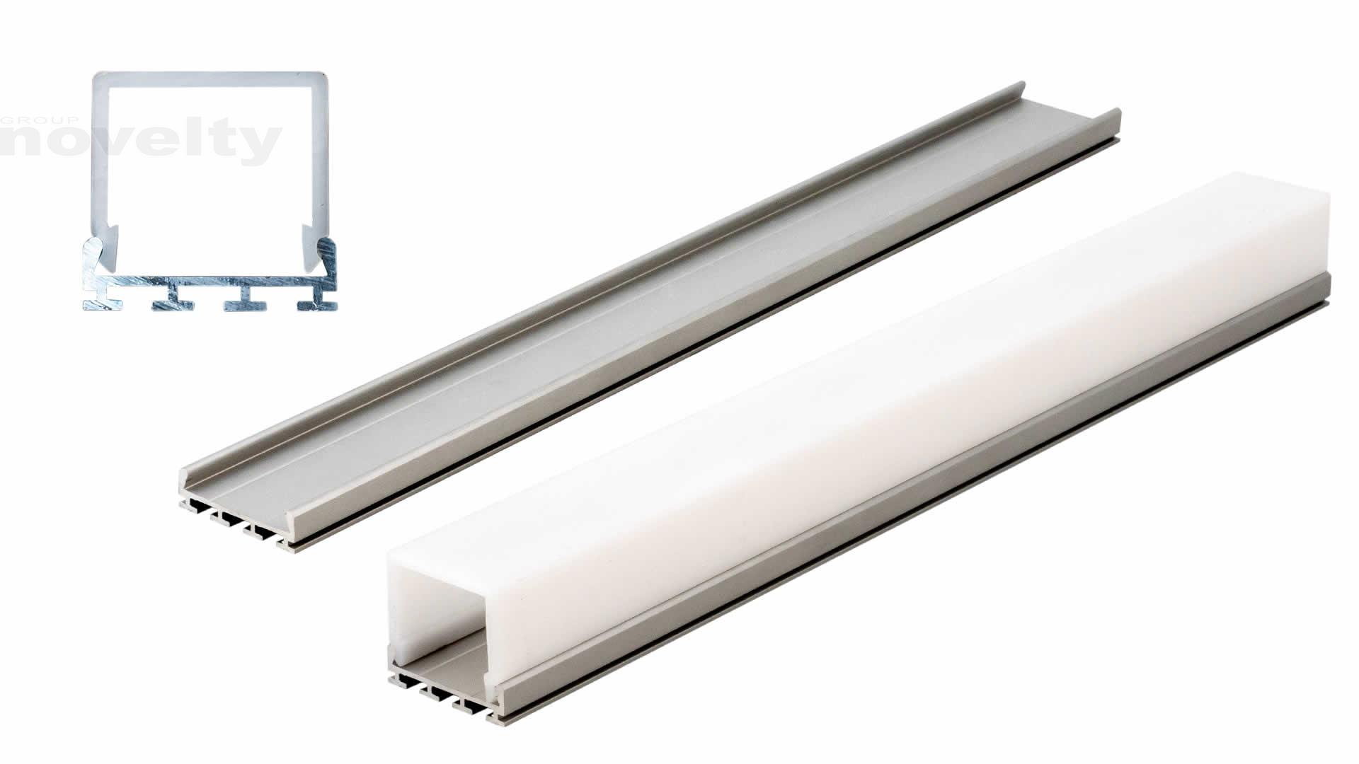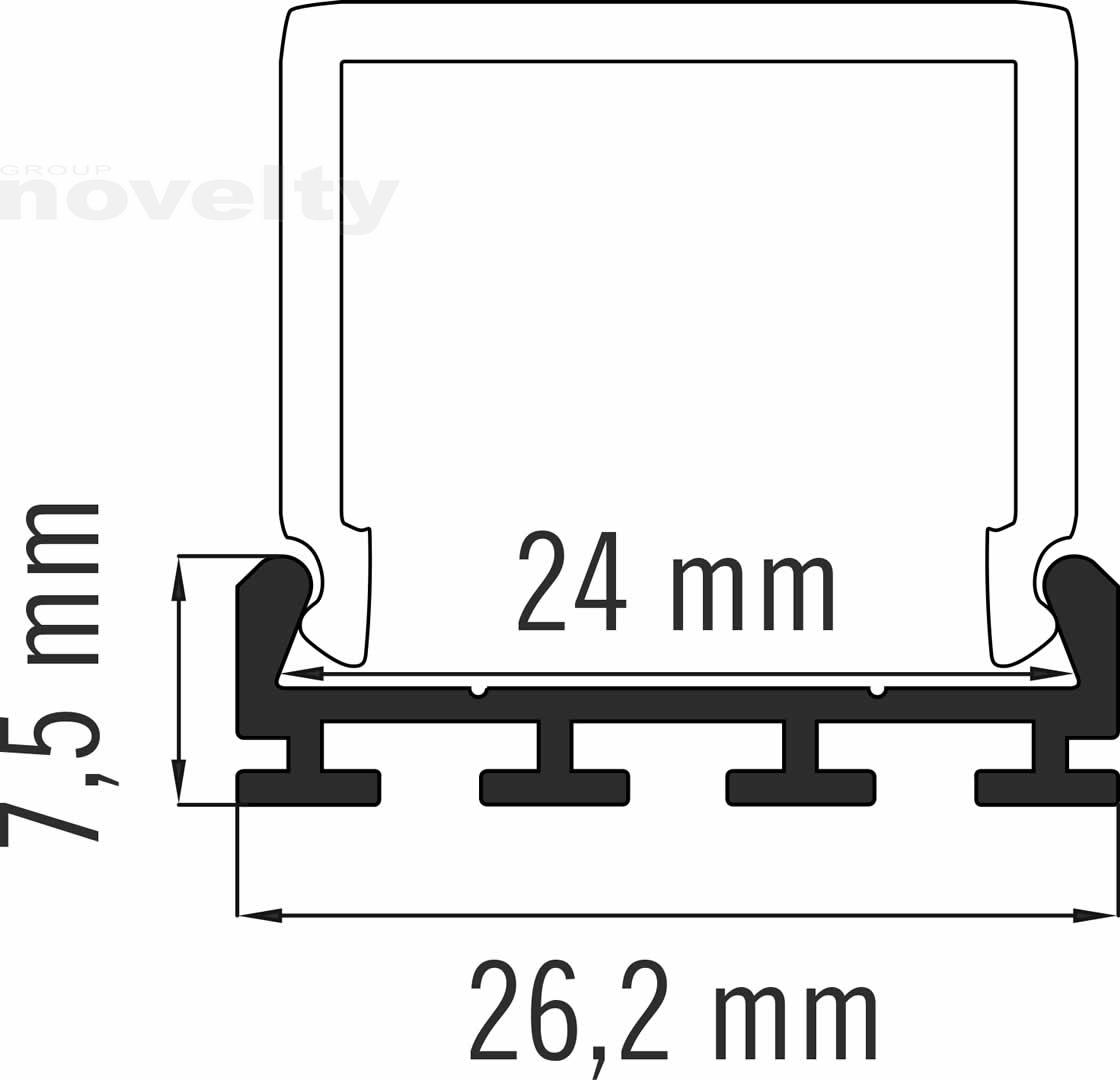 Profilé alu pour ruban LED en longueur de 2m, avec couvercle diffusant carré larg. 24mm