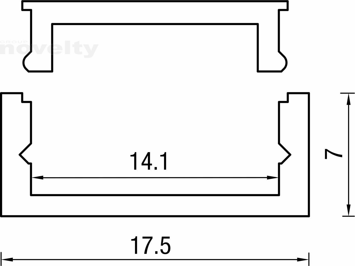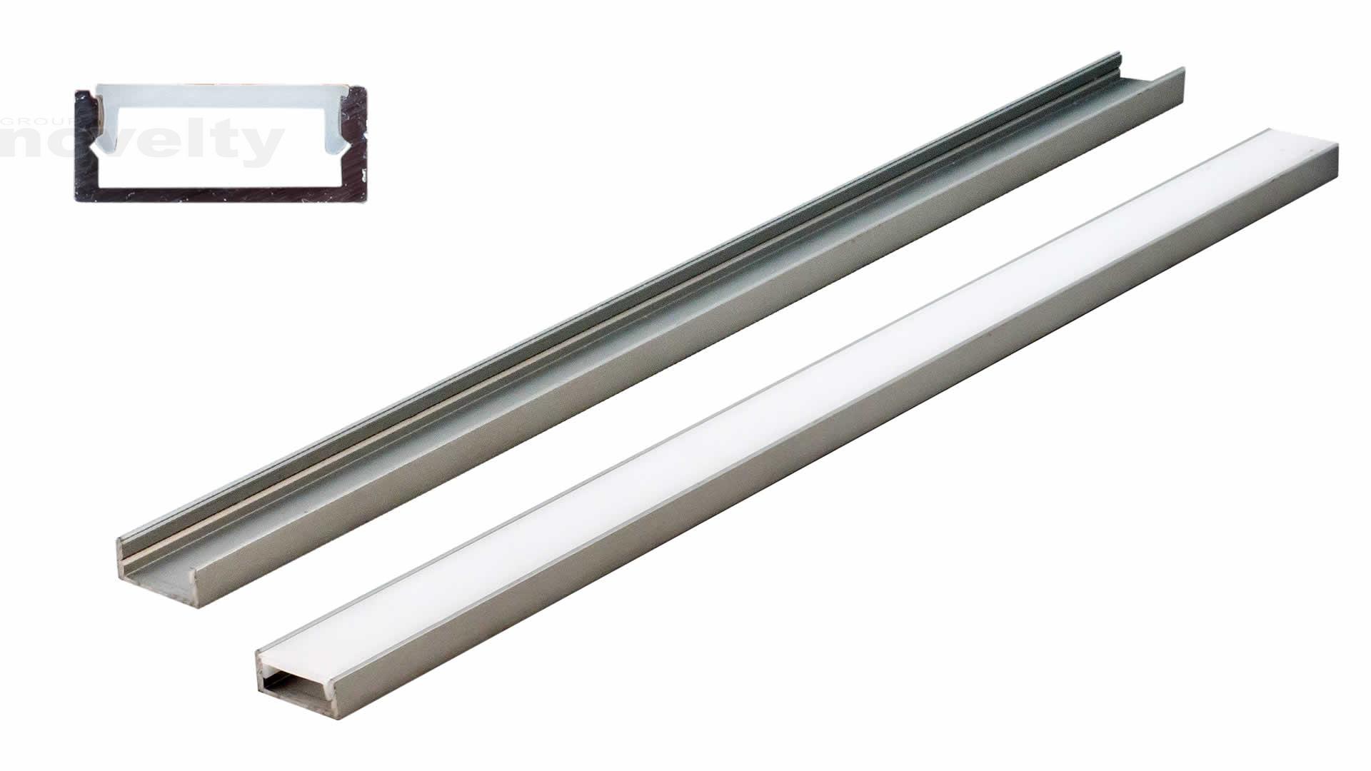 Profilé alu pour ruban LED en longueur de 2m, avec couvercle diffusant plat larg. 15mm