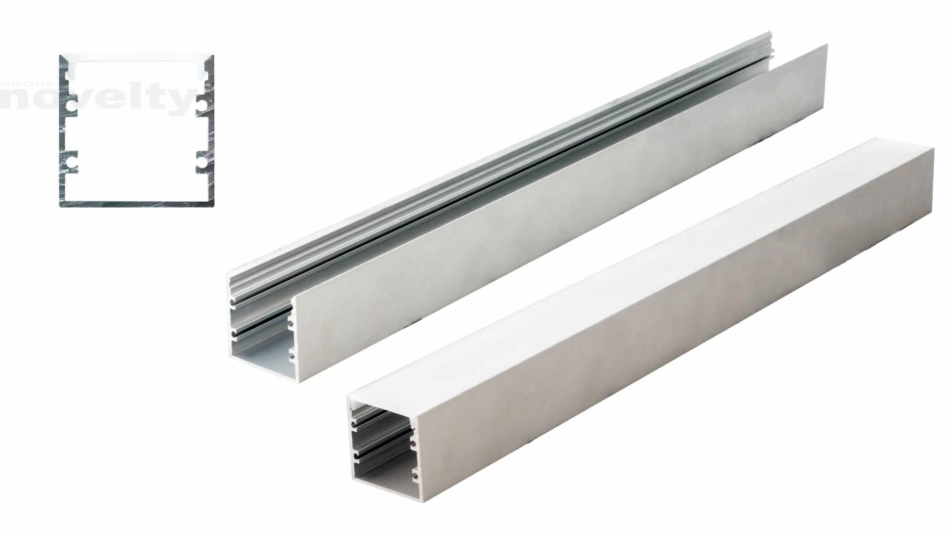 Profilé alu pour ruban LED en longueur de 2m, avec couvercle diffusant plat larg. 29mm