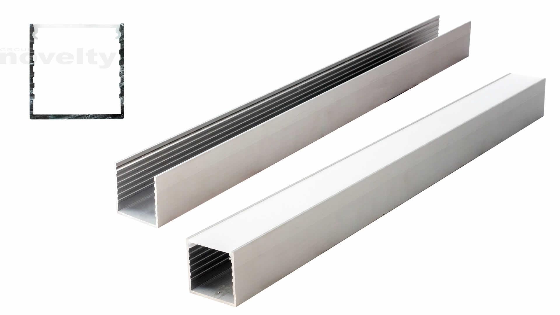 Profilé alu pour ruban LED en longueur de 2m, avec couvercle diffusant plat larg. 32mm