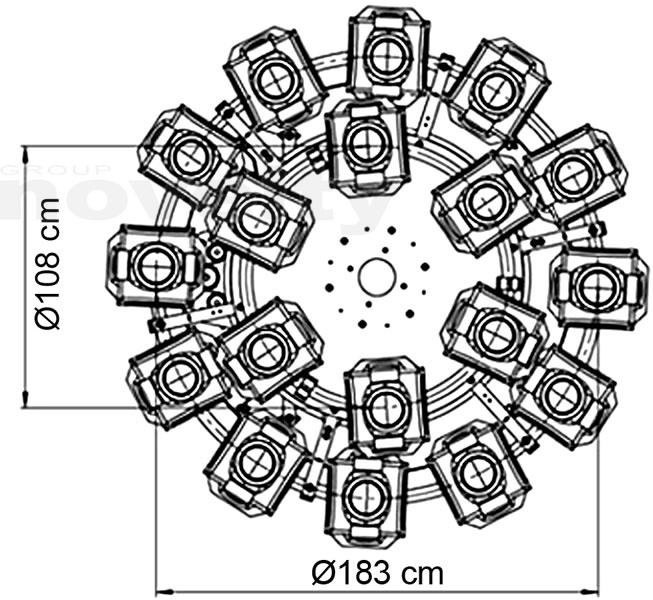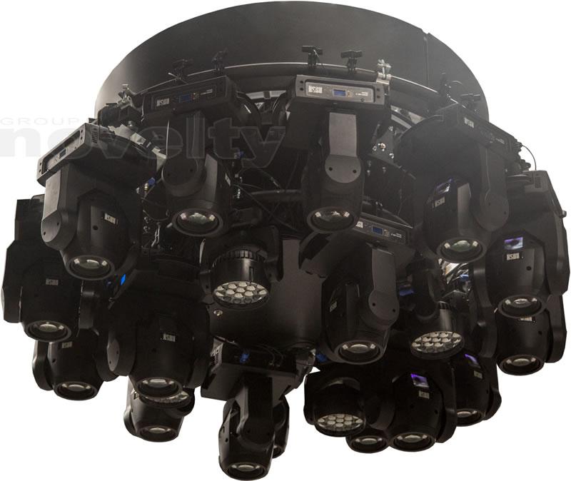 Double cerce motorisée, Ø183cm & Ø108cm, pour 18 projecteurs asservis.