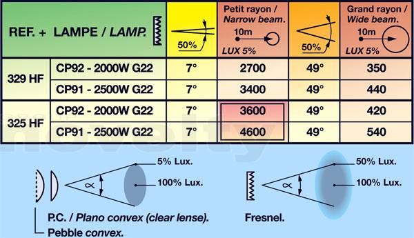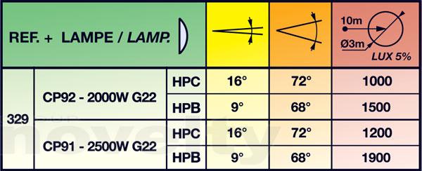 • Leds ou Lampe : CP92 (2000W - G22) ou CP91 (2500W G22)