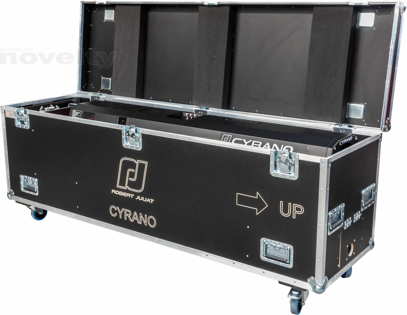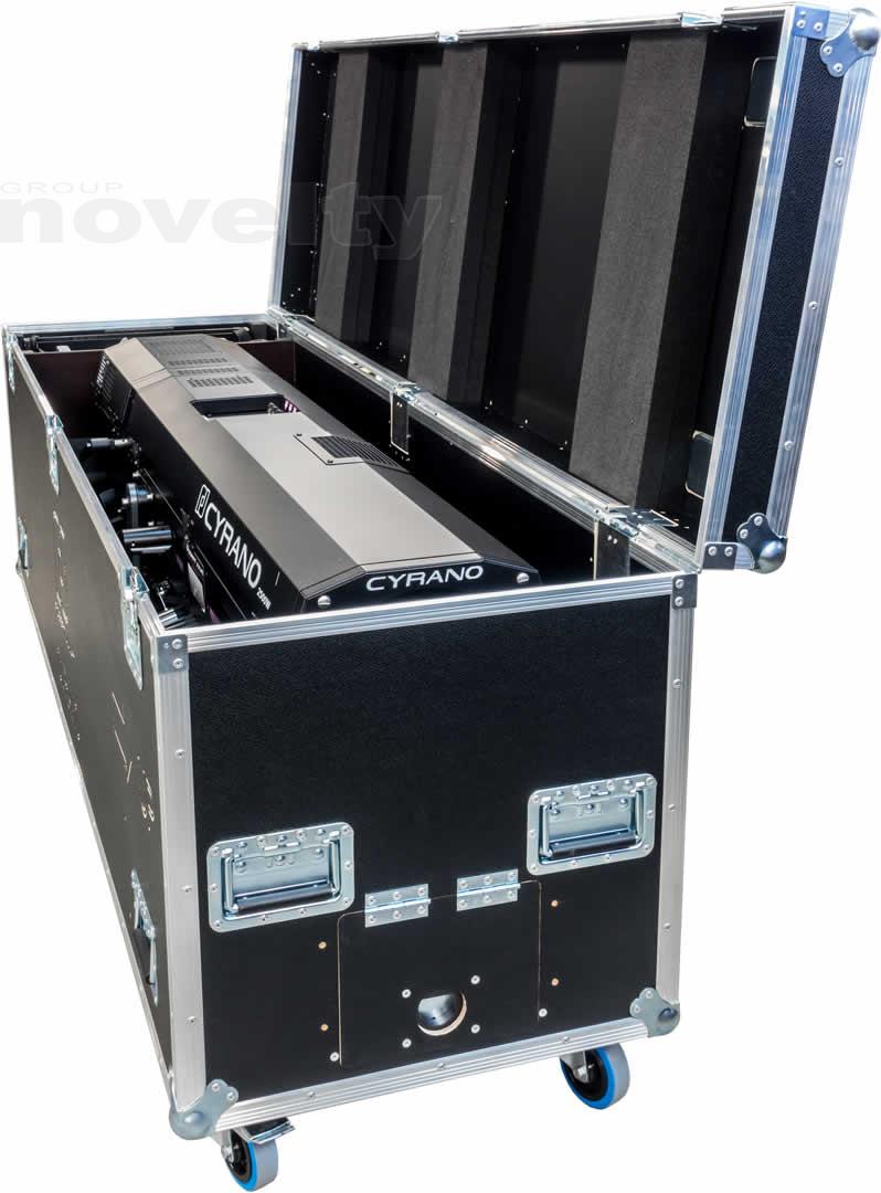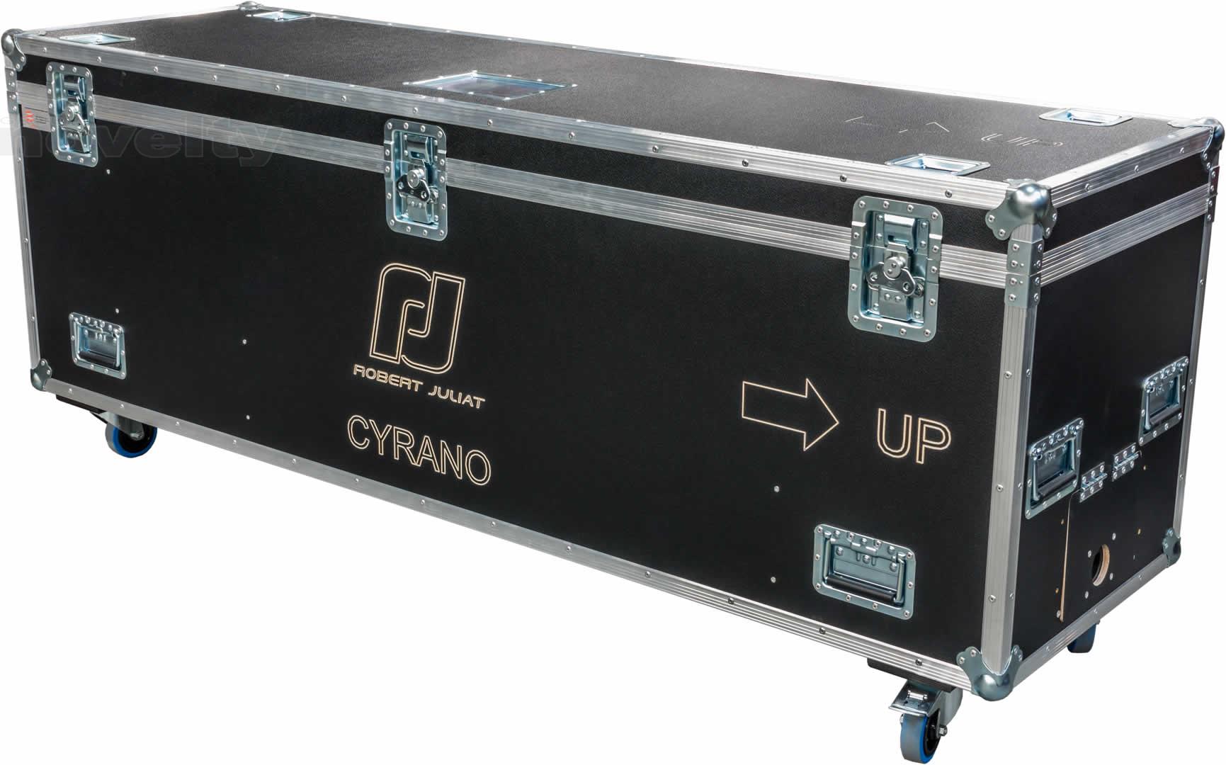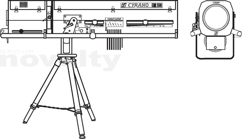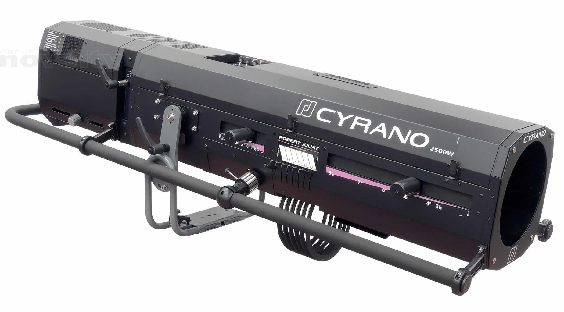 Son faisceau plus serré est parfait pour les très longues distances de projection propres aux plus grands théâtres et stades ou lorsqu'un surcroît de puissance est nécessaire sur de plus courtes distances. Son verre dépoli progressif et son filtre dichroïque bleu foncé offrent des possibilités d'effets encore plus subtiles. Le verre dépoli progressif, l'obturateur motorisé et l'amorçage de la lampe peuvent être contrôlés par DMX pour une synchronisation parfaite. Avec son obturateur exceptionnel qui lui donne une capacité de gradation magnifique, Cyrano est indispensable dans les opéras.