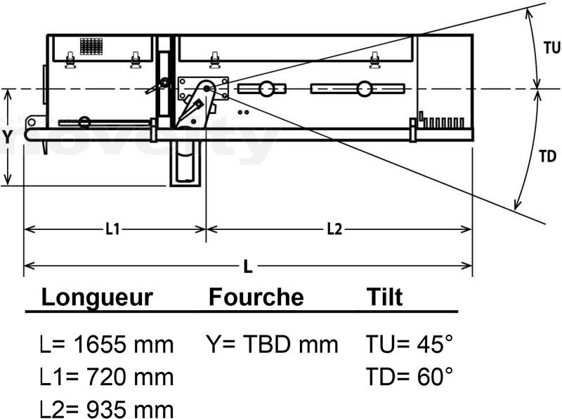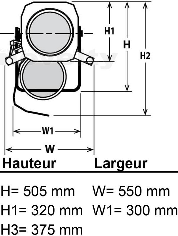 - Dimensions unitaires : 1655 x 505 x 550 mm (poursuite sans pied)