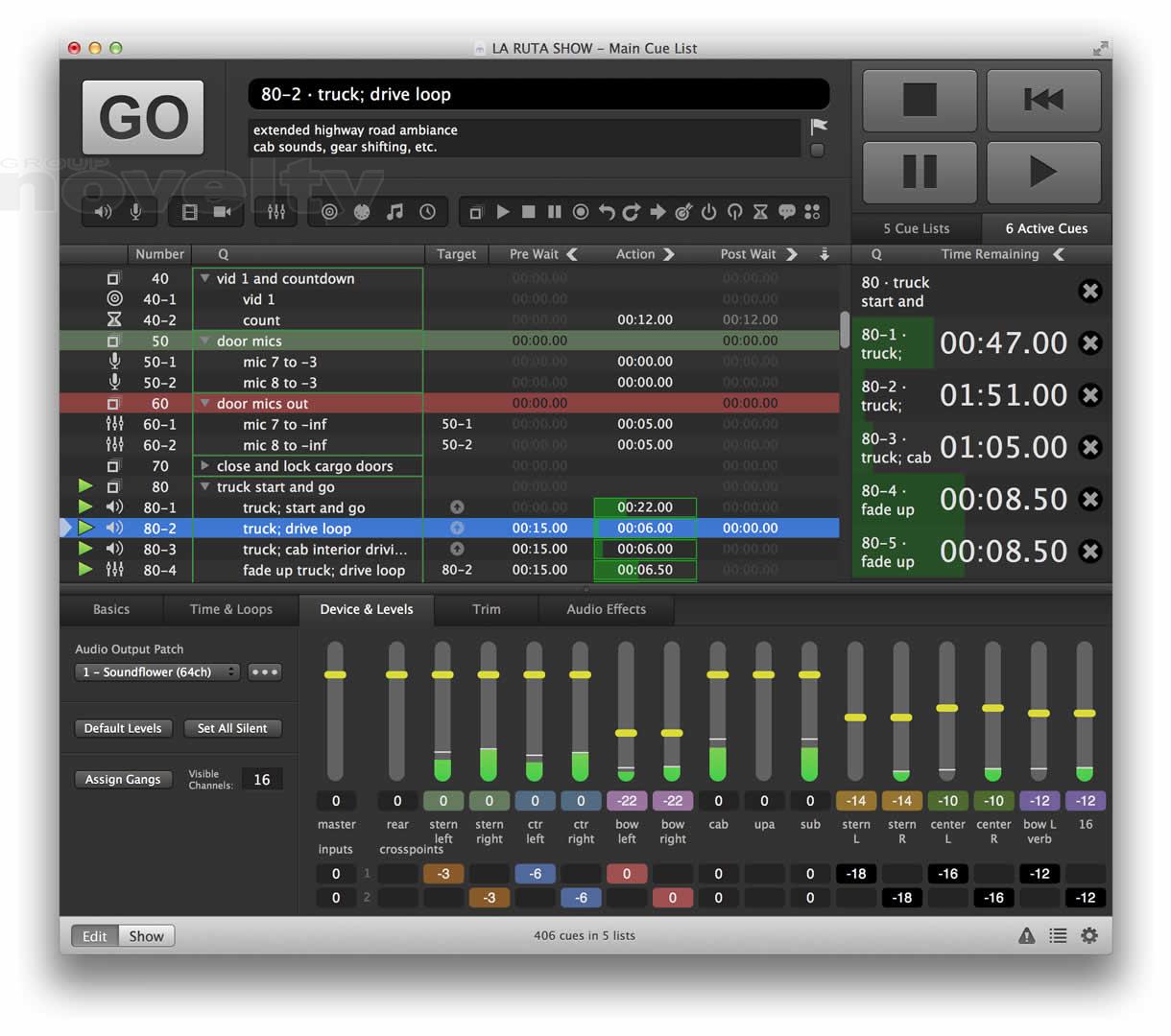 QLab allows you to design and operate amazing multimedia performances from your Mac OS X computer. A single QLab workspace can control audio, video, MIDI, OSC, and more.