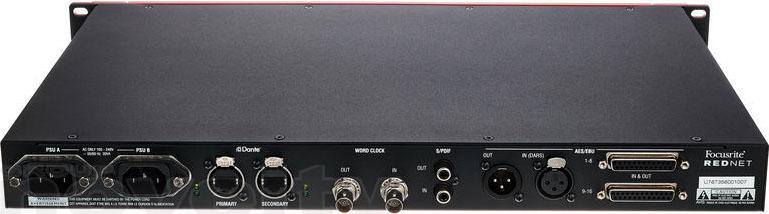 La Focusrite RedNet D16R est une interface 1U pour rack 19 pouces dotée de 16 canaux AES/EBU vers et depuis un réseau audio Dante, ce qui est parfait comme passerelle entre consoles numériques, amplificateurs de puissance ou tout autre équipement audio AES3 et un réseau Dante. Les deux connecteurs Ethernet (principal et secondaire) de la face arrière assurent une fiabilité maximale du réseau avec une bascule transparente sur un réseau de secours dans le cas peu probable d'une panne de réseau. Ces ports peuvent également servir à brancher en cascade des unités supplémentaires cas de fonctionnement en mode commuté.- Sample Rate Range