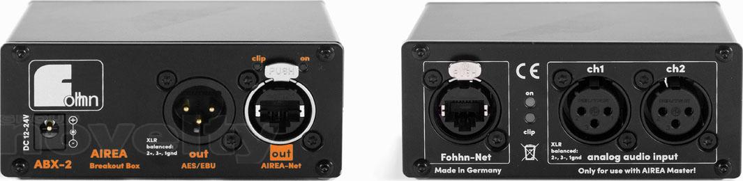 - Fohhn AM-50Amplificateur "AIREA-Master", interface centrale / alimentation, 8 x AES/EBU, Entrées Fohhn-Net, 8 sorties réseau AIREA permettant d’alimenter jusqu’à 32 enceintes actives.