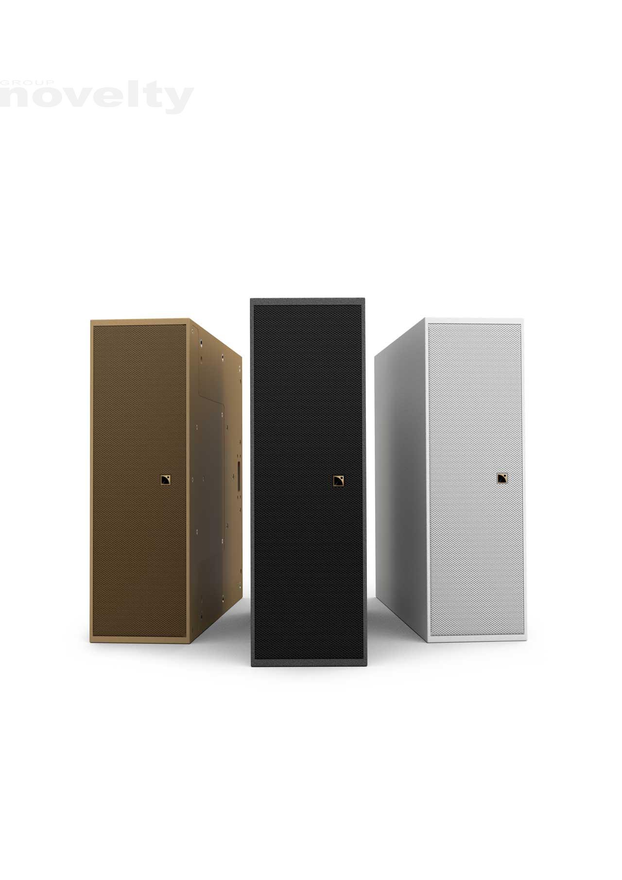 - Front : Coated steel grill acoustically neutral 3D fabric
