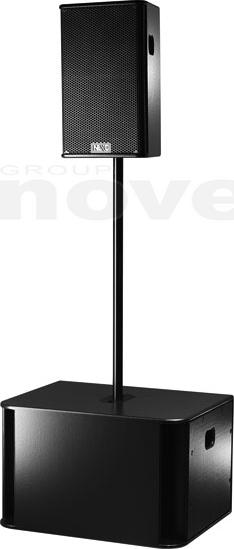 - K-M PIED/DIF2Tige support pour enceinte, charge maxi = 35 kg, hauteur = de 0,90 à 1,45m. Se fixe sur un caisson de grave par exemple