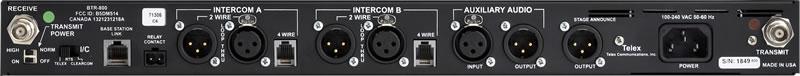 Station sans-fil 2 canaux Full Duplex pour RTS, permet de gérer jusqu'à 4 belt packs, XLR4F version Française. Le système intercom sans fil BTR-800 de Telex RadioCom est l'aboutissement en matière de communications full duplex, haute-fidélité.Le système BTR-800 comprend la station de base, et jusqu'à 4 boîtiers- ceinture, l'ensemble fonctionnant en mode full duplex.Le BTR-800 permet de générer 2 canaux audio, donnant la possibilité aux exploitants de choisir entre 2 canaux audio de communication avec la base gérant les beltpacks.Le BTR-800 est prévu pour fonctionner aussi bien seul qu'en liaison avec des systèmes intercom comme ceux développés par RTS TW, AudioCom, Clearcom, des matrices RTS ou tout autre équipement d'intercom 4 fils.De plus, le système est équipé d’entrées/sorties auxiliaires audio symétriques. Le BTR-800 a été conçu pour offrir des communications de haute qualité. Opérant dans la bande de fréquences 518-740 MHz, l’appareil fonctionne avec une portée utile d’environ 300 mètres. Il est possible d’étendre cette portée par l’adjonction d’accessoires de déport d’antennes Telex. Les boîtiers ceinture offrent une autonomie allant jusqu’à 12 heures, en fonctionnement continu, avec des piles alcalines courantes.