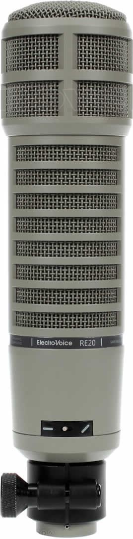 The Electro Voice RE 20 with its outlandish looks is nothing less than the most reputable all-round microphone in the world. This dynamic microphone is a moving-coil type with a cardioid polar pattern. It can be found in every TV, radio and sound studio, thanks to its flat response over a broad frequency range along with its durability and reliability.