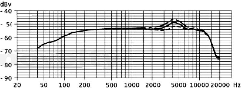 - Sensibilité (champ libre, circuit ouvert, 1 kHz) : 2,2 mV/Pa