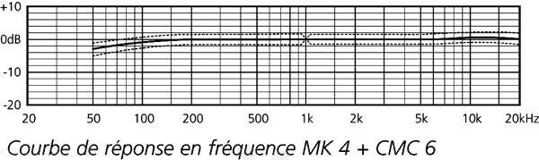 - Un peu de technique : l'amplificateur fournit à la capsule le courant qui lui permet d'émettre un signal. Comme ce signal est très faible (à haute impédance), il a besoin d'une amplification (de courant). Afin d'éviter toute perturbation du signal entre le micro et l'entrée, celui-ci doit être transporté à basse impédance et symétriquement. Le CMC 6 possède un étage de sortie classe A symétrique, sans transformateur ni condensateur. Cette configuration se traduit par une impédance de sortie très faible, une grande résistance aux interférences, une faible distorsion et un faible poids.