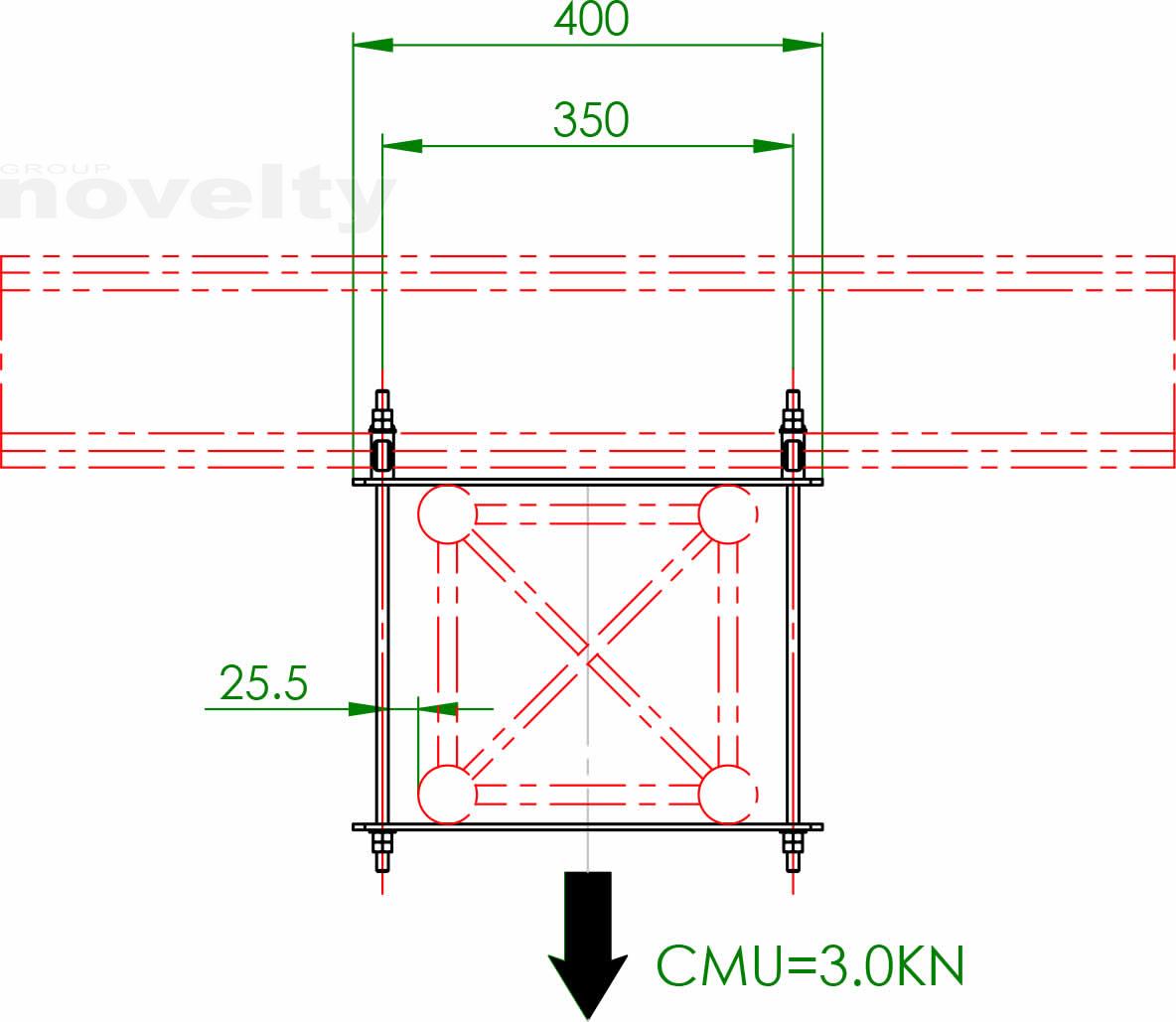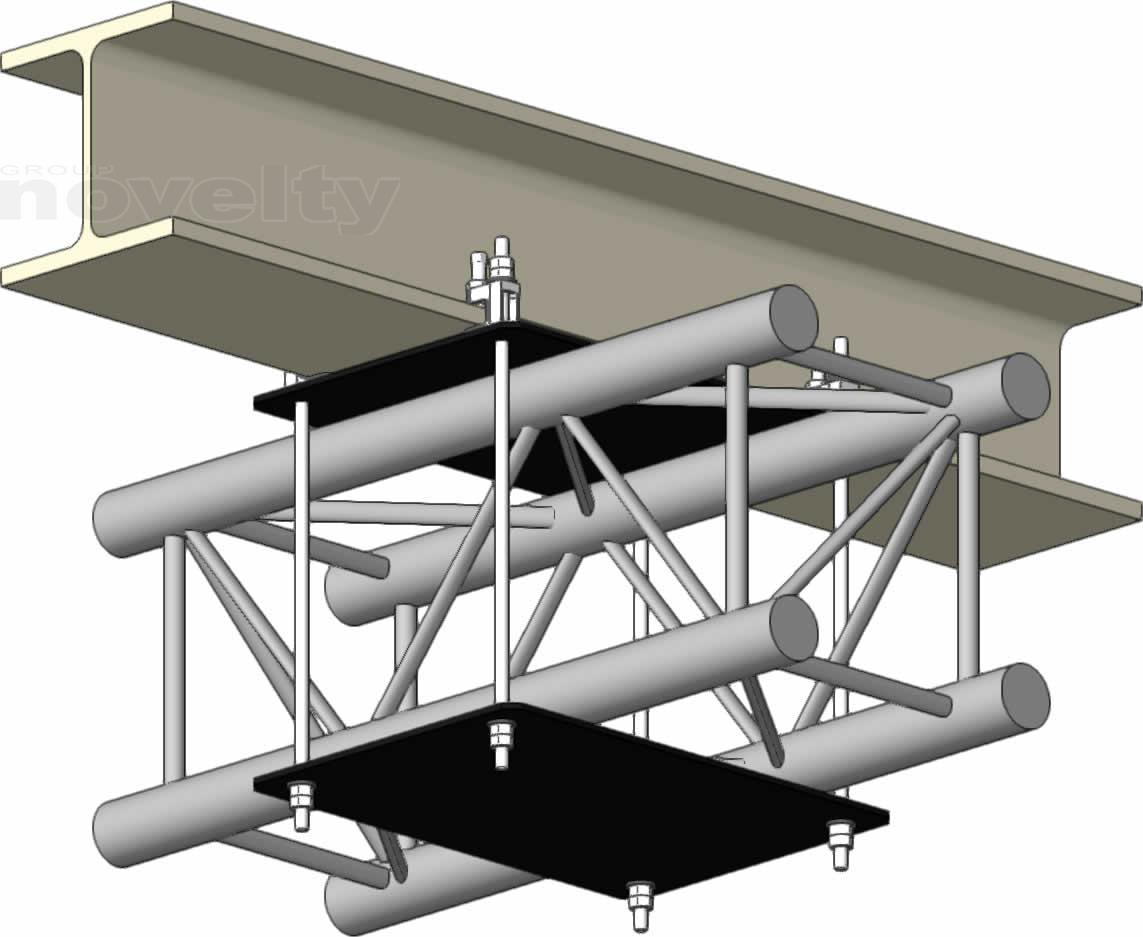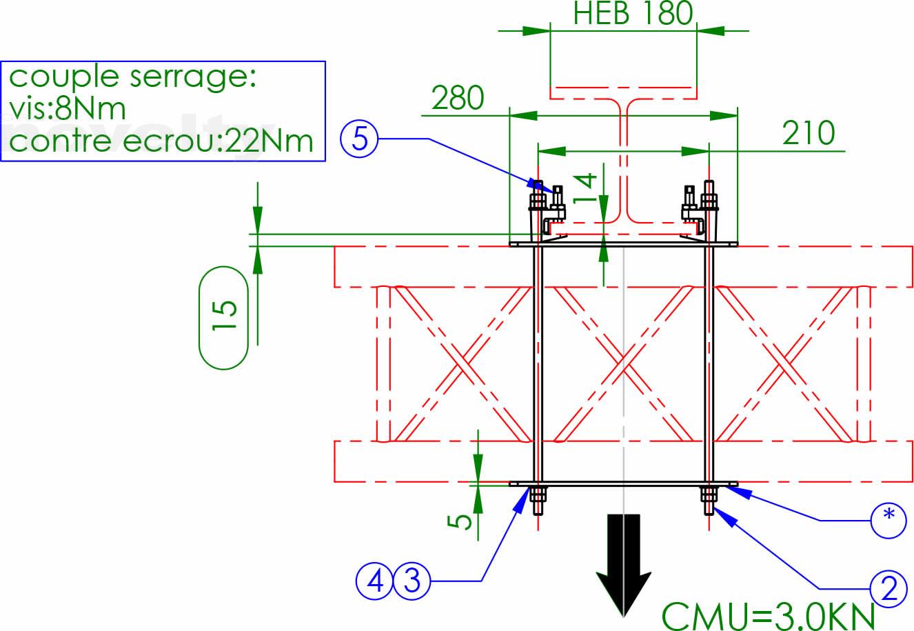 Ensemble d'accroche double pour série 300 carré sur poutre IPN type HEB180, CMU 300kg