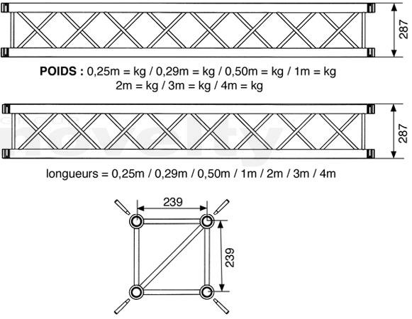 Poutre de 0,145m, section carrée, noir (équipée de 4 manchons + 8 goupilles/sécus)