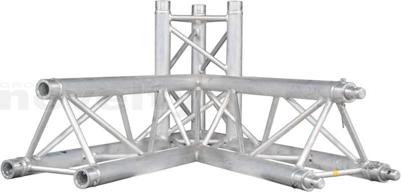 Angle d'assemblage 3D, couleur alu, 60°+pied (équipé de 3 manchons + 6 goupilles/sécu)