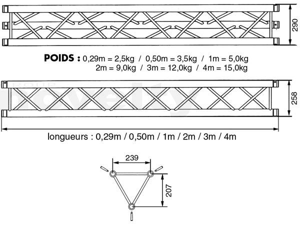 Poutre de 0,29m, section triangulaire, noir (équipée de 3 manchons + 6 goupilles/sécus)