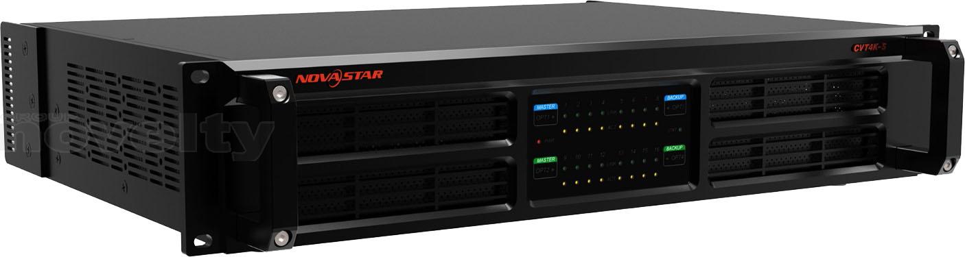Le CVT4K-S est un convertisseur de fibres haute performance qui peut être utilisé avec le contrôleur MCTRL4K (101652). Le CVT4K-S gère la transmission de signaux de 16 liaisons Ethernet par câble à fibre optique et permet la transmission de signaux longue distance jusqu’à 10 km qui demeurent stables et sont difficiles à brouiller. Les modules SFP requis dotés de l’interface LC sont inclus. Chaque sortie possède un indicateur sur le tableau avant qui vous permet de vérifier instantanément si toutes les sorties transmettent des données. Le CVT4K-S dispose non seulement d’une alimentation interne redondante, mais aussi de ports optiques redondants assurant une fiabilité maximale lors de chaque spectacle ou événement.- 16 ports Ethernet de sortie