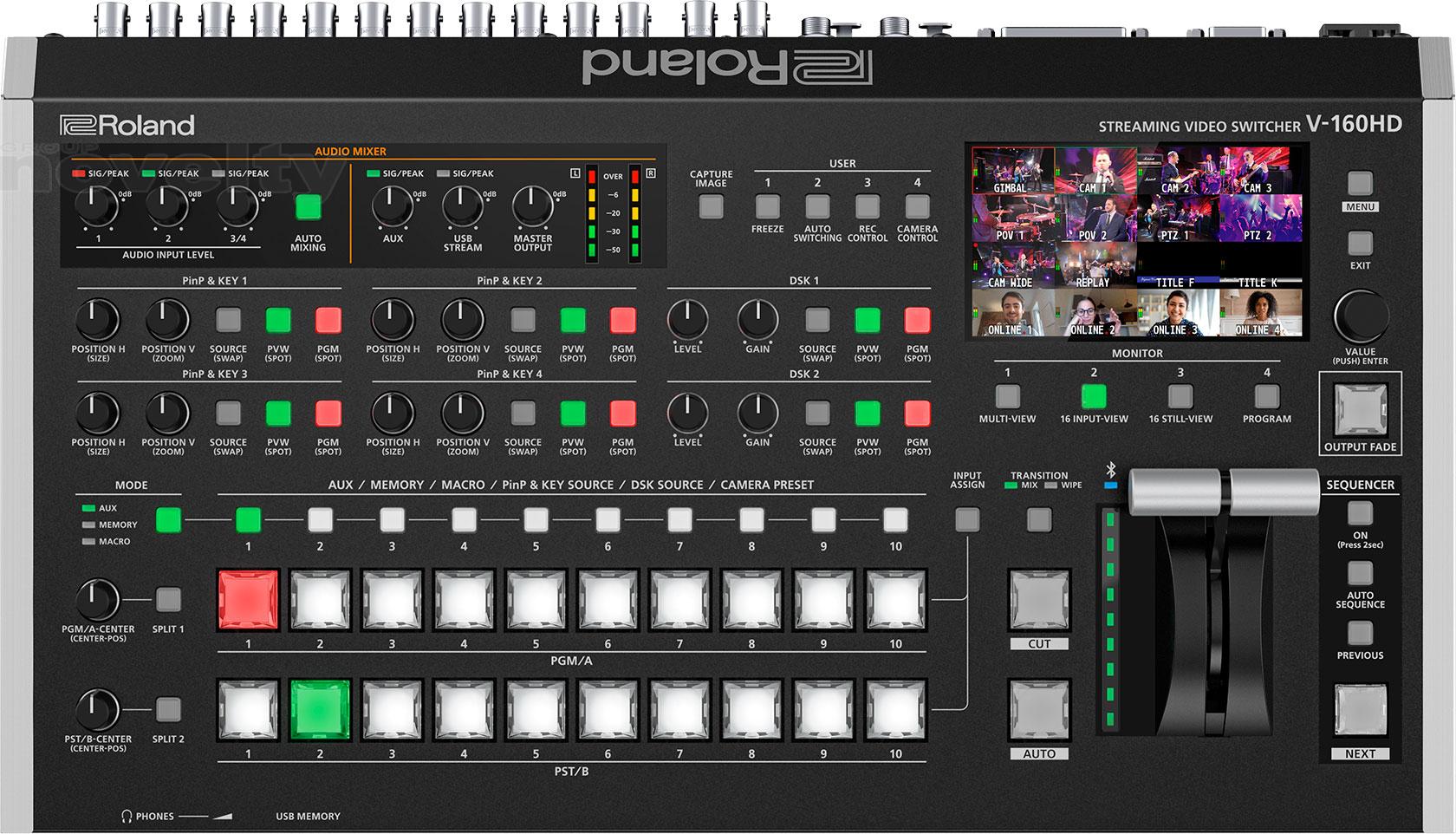 Le Roland V-160HD est rempli de fonctions professionnelles pour prendre en charge tous type de production actuelle. Le V-160HD se pose comme nouveau standard des mélangeurs pour événements hybrides. Il vous permet d’afficher des images Full HD pour le public présent en salle grâce à une connectique SDI et HDMI complète, et de diffuser simultanément en streaming via USB-C sur les plateformes populaires du Web.
