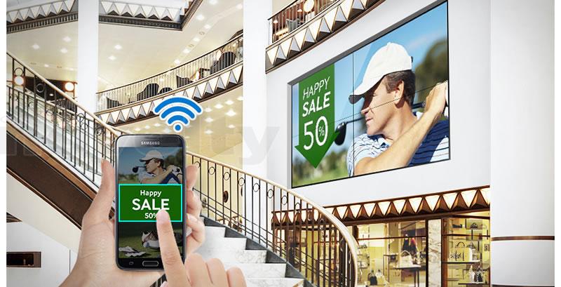 UED Series digital signage comes equipped with a Wi-Fi module that enables you to easily transfer, play, share and schedule digital signage content on a video wall without a physical connection. You no longer have to deal with burdensome wires, numerous connector ports or intricate cabling that can complicate video wall deployment and distract from the sleek look of the video wall. With mobile app control and content sharing features, you can deploy and manage content from virtually anywhere using a Wi-Fi-equipped smartphone, PC or tablet for maximum flexibility. You can even wirelessly configure and deploy content to new digital signage installations using the Wi-Fi module. This feature is ideal in places where cabling is difficult to install.