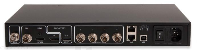 - CONNEXIONS DE SORTIE VIDÉO : 4 x 3G SDI (1080p/60 ou équivalent jusqu’à 165MP/s) Sortie en boucle: DisplayPort1.2 (verrouillé sur la résolution d'entrée vidéo choisie)