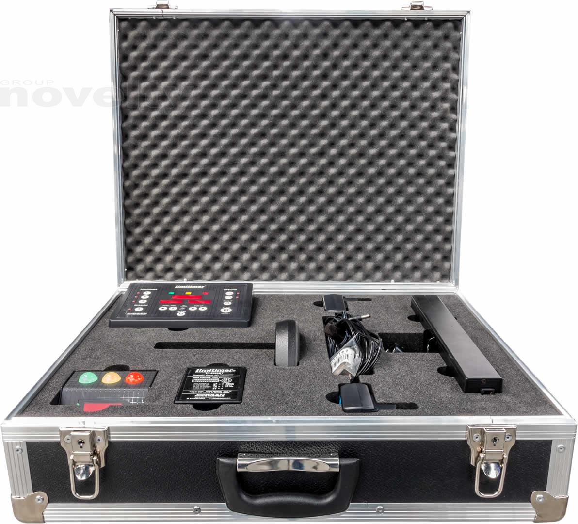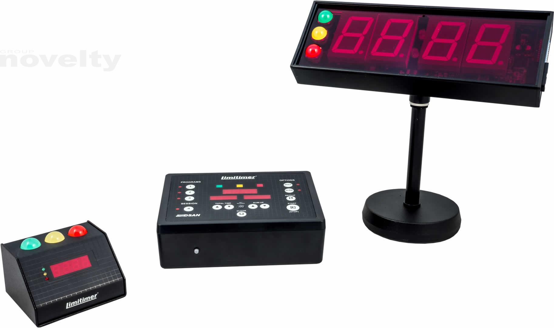 Kit chronométreur de temps de parole Bluetooth, composé d'1 console de commande Bluetooth LimiTimer PRO2000, 1 récepteur Bluetooth avec son alimentation TR-2000BT, 1 affichage podium PSL-20V, 1 affichage audience ASLA-ND3