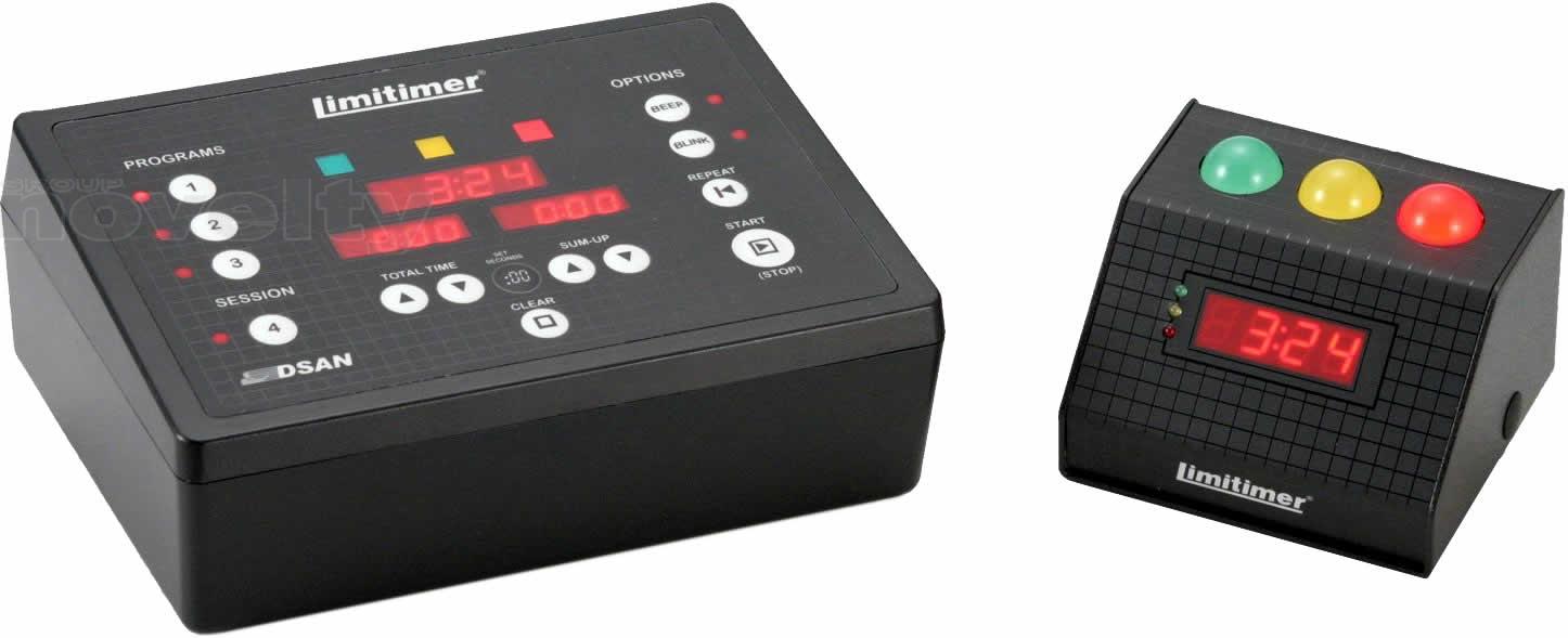 The DSan Limitimer PRO-2000 is an automated timekeeper that controls a remote signal light alerting speakers to the end of allotted time. Limitimer...Keeps time at lectures, forums and legal proceedings. Maintains pace of programs. Builds confidence that no one's time is unfairly curtailed. Spares moderators the need to interrupt and helps speakers end smoothly.Package includes the PSL-20V Podium Signal Light. The PSL-20V features an on board beeper; signal lights front and back. Additional signal lights may be plugged into on-board jack. Dimensions: 3"D x 4"W x 3"H. Note: All signal lights contain both input and output jacks (RJ45) so that they may be interconnected in a daisy chain with other signal lights to create a custom display configuration. Use ordinary Cat 5 data cable. Signal Light connections can also be made with XLR cable using a XLR to RJ45 Adapter.