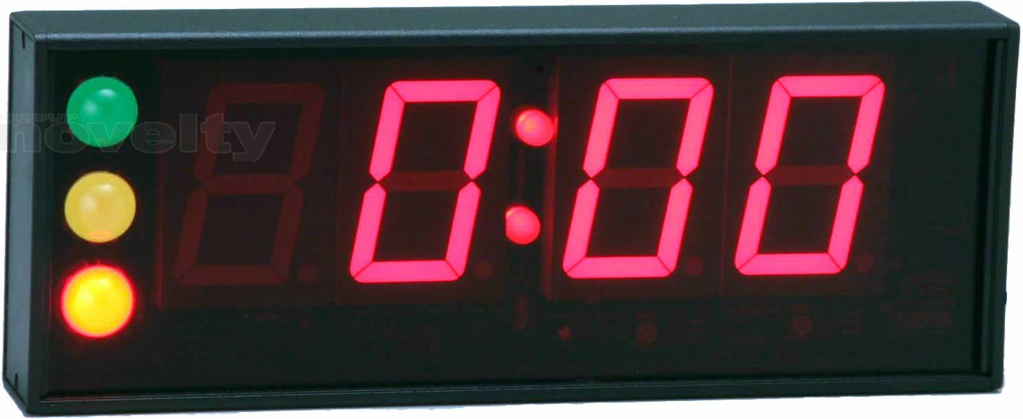 - Digital clock displays Time Remaining; Green-Yellow-Red lights cue phase: Talk, Sum-Up, Stop.