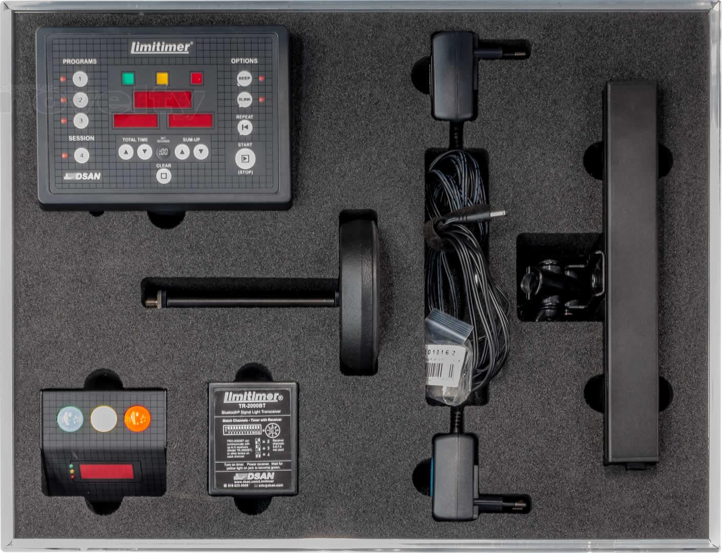 This wireless option allows several wireless Limitimer Systems to be used in proximity to one another or with a DSan wireless cue light. Up to three (3) six signal lights can be connected to a Bluetooth-enabled timer. Each signal light will require its own receiver Model TR-2000BT.