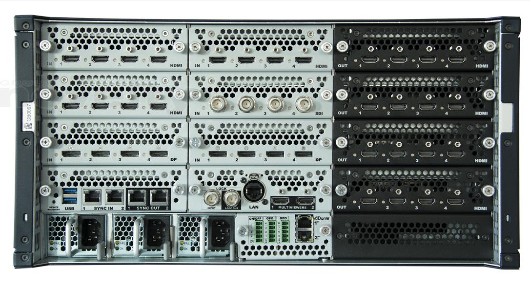 • FutureFuture-proof modular design with a full set of field swappable I/O cards : 8x HDMI 1.4, HDMI 2.0, DP 1.2, 12G 12G-SDI, 2.5GbE NDI+12G 12G-SDI,