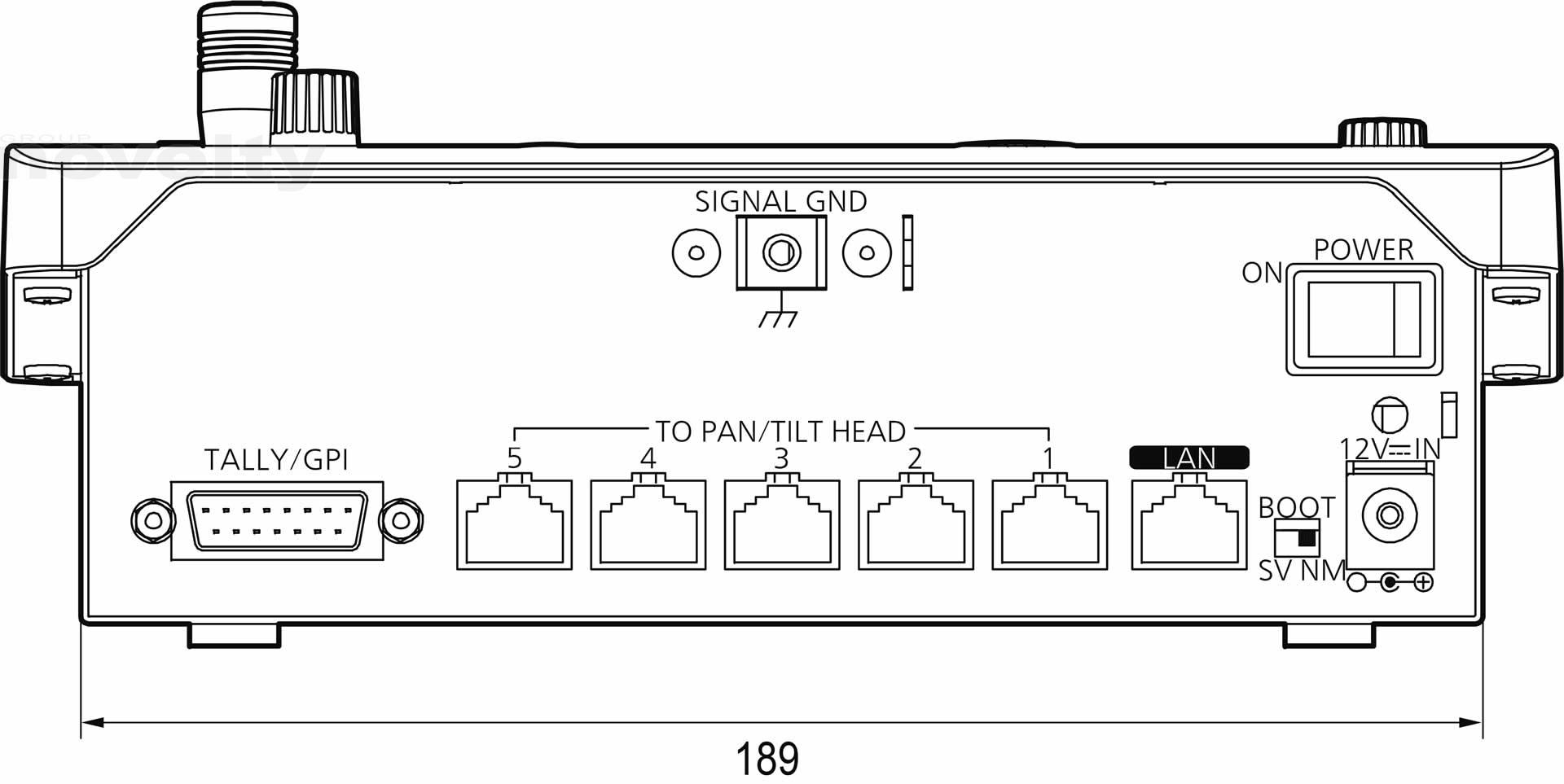 Contrôle PTZ classique, accès au presets (100 presets / camera). Accès direct à 5 caméras et 10 présets avec Master Pedestal, Gain, ABB, AWB, White Balance, Shutter, Detail... Format demi-rack, hauteur 3U.
