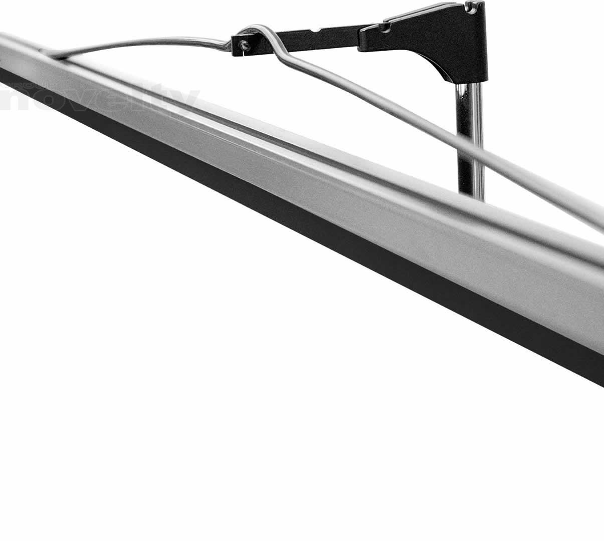 Cette génération d'écrans mobiles est simple, compacte et robuste. La hauteur d'ouverture est ajustable à toutes les hauteurs par la perche télescopique et le parallaxe corrigeable par la potence inclinable. Un tendeur spécialement étudié garantit une bonne planéité. La surface de projection est sur une base tissé opaque et possède une cadrage noir.
