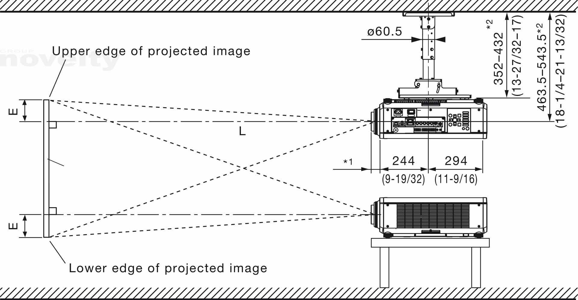 *2.54 – 7.62 m (100 – 350 inches) with the ET-DLE030 (16:10 aspect ratio)
