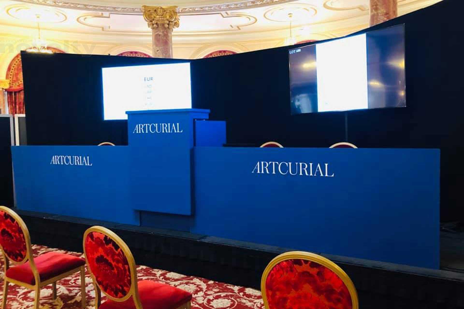 Pour cette vente hybride, Novelty Azur a mis en place un écran 75'', un rack de son pour 2 micros HF et l'éclairage avec des NOVELTY MatLED.