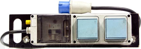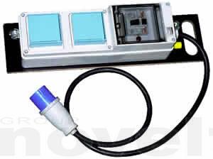 Boitier de distribution. Entrée P17 16A mono. Sorties : 2 x PC16A. Protection différentielle 30mA
