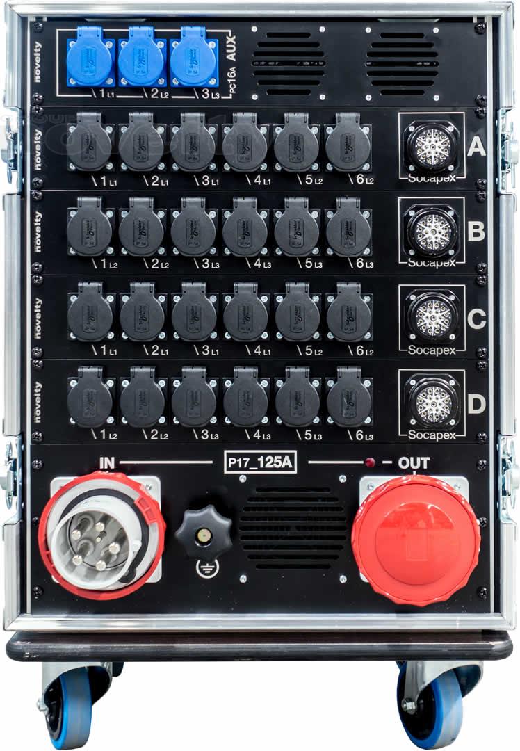 Armoire de distribution IN = P17 125tri / OUT = 24+3 x PC16 + 4 x Soca 419, 30mA, Vigi 0.3-3A, recopie 125A
