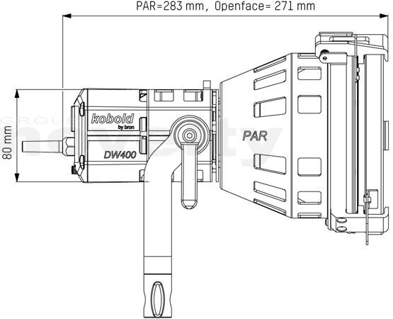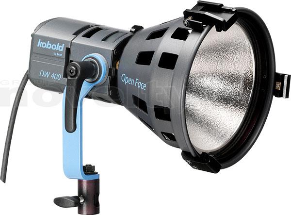 The extremely compact, focusable 400 W daylight spotlight kobold DW 400 can be equipped, as the need arises, with different reflectors or adapters to receive softboxes. The chosen attachment converts the lamp base into a fully-fledged Open