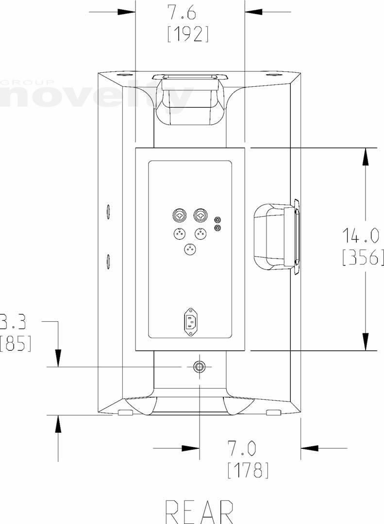 - Connectors : Balanced female XLR/¼" line/mic level input, Balanced female XLR/¼" line level input, Dual Balanced male XLR full range line level out , Balanced male XLR "mix" out, Stereo RCA line level input, Remote gain control, Locking IEC power connector